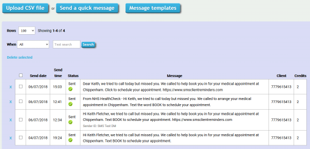 We recommend that you check the length of your message before sending as each text will deduct credits from your account in the same way as your reminders do, i.e. any messages over 153 characters will use more than one credit. Remember that any data you include from your spreadsheet will also add to the character count of your messages.